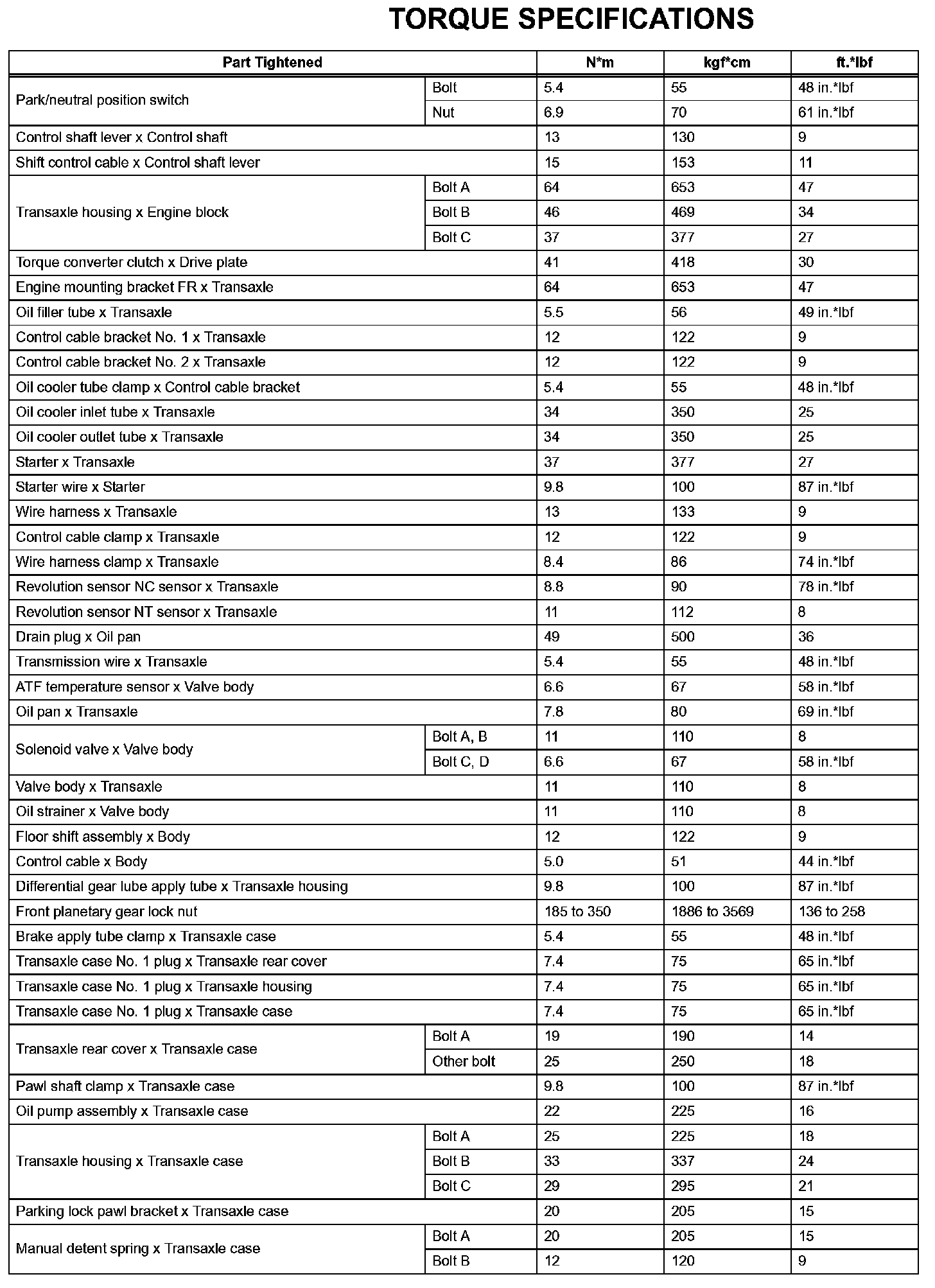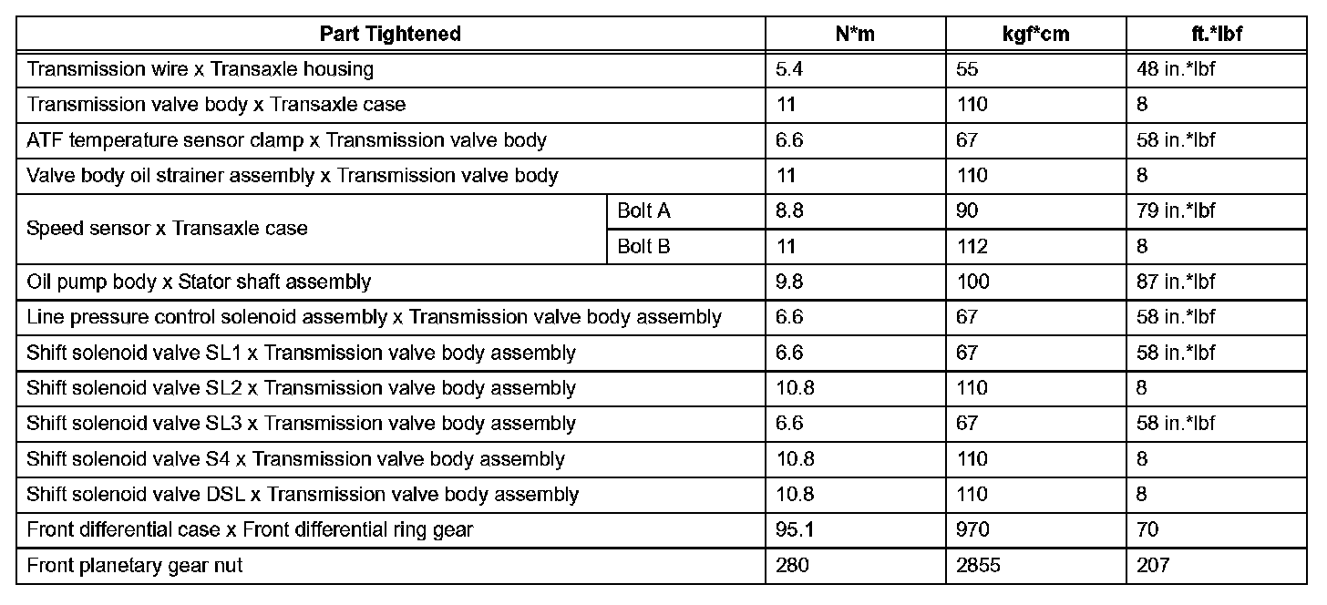 Automatic Transaxle - Torque Specifications (Part 2):