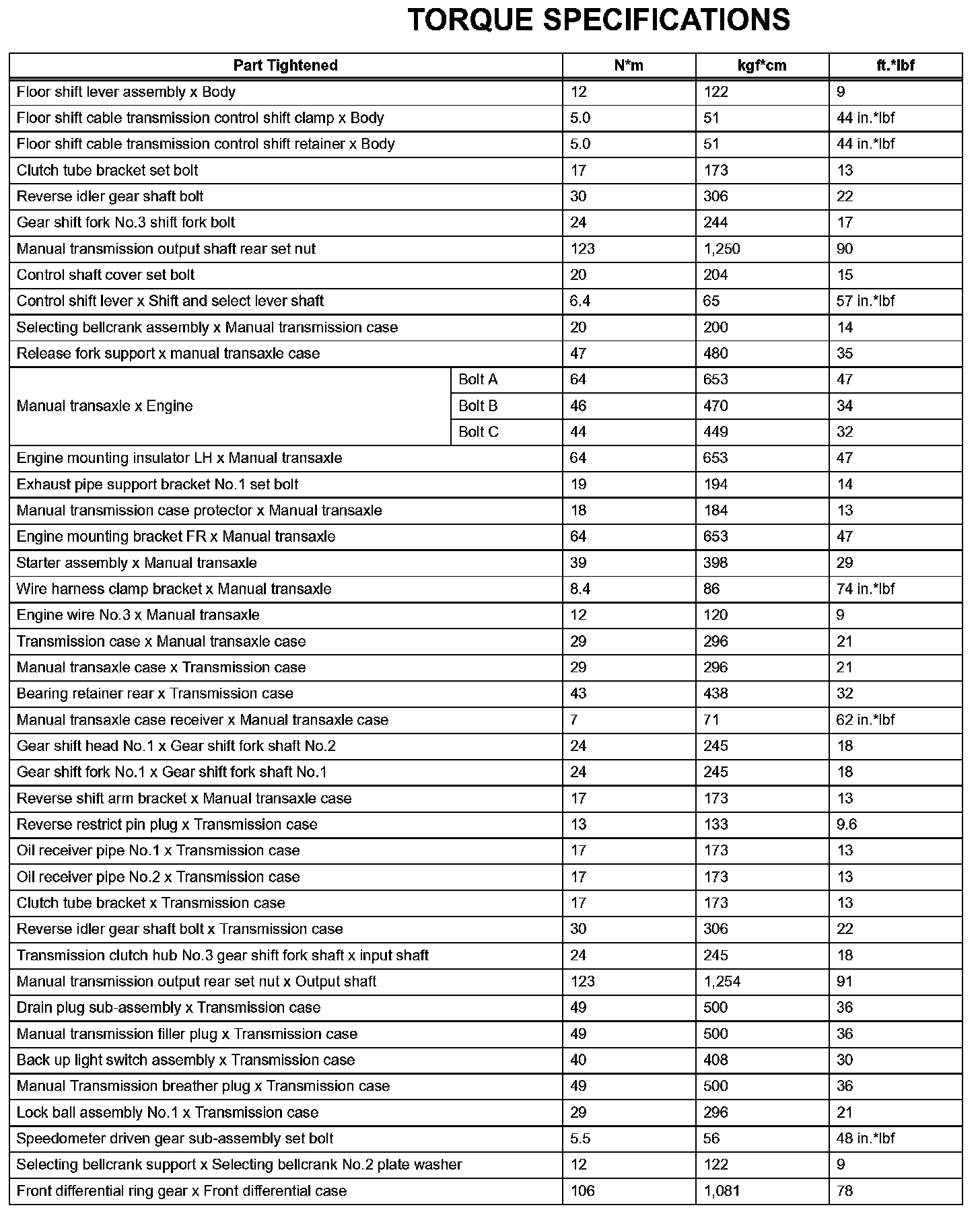 Manual Transaxle - Torque Specifications: