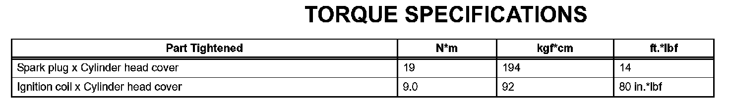 Ignition - Torque Specifications: