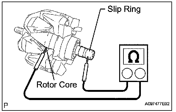 2. Measure the resistance between the slip ring and rotor core.