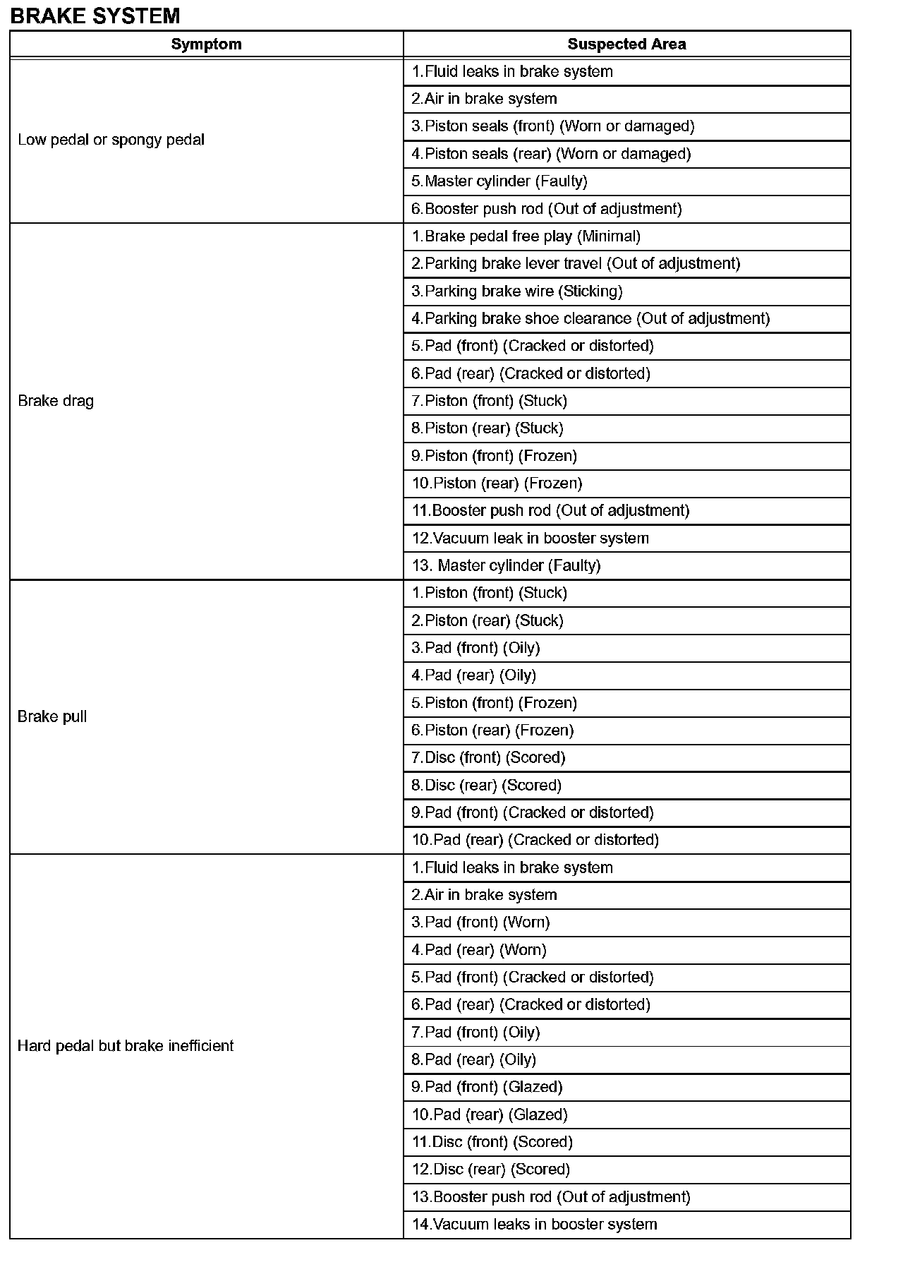 PROBLEM SYMPTOMS TABLEUse the table to help you find the cause of the problem. The numbers indicate the priority of the likely cause of the problem. Check each part in order. If necessary, replace these parts.