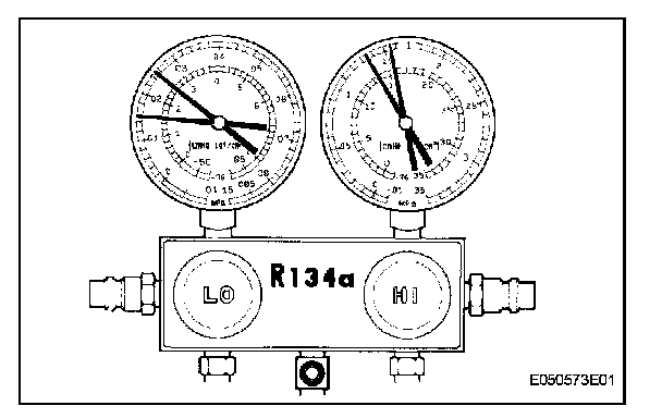 1. INSPECT REFRIGERANT PRESSURE WITH MANIFOLD GAUGE SET
