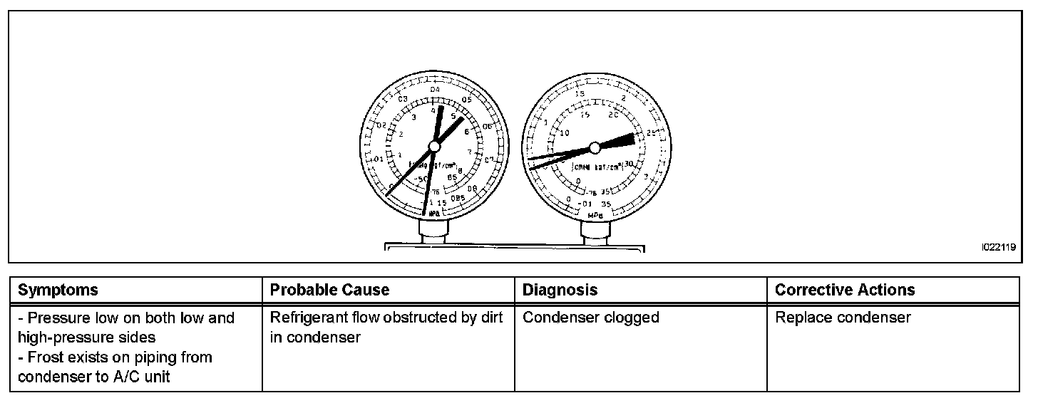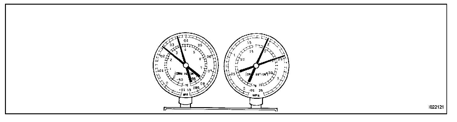 a. This method uses a manifold gauge set to locate problem areas. Read the manifold gauge pressure when these conditions are established. Test conditions: