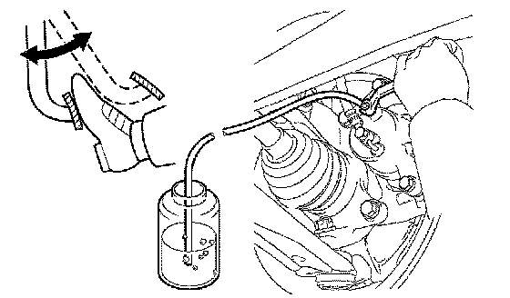 ^ During this procedure, the pedal will feel heavy, but completely depress it so that the brake fluid comes out from the bleeder plug.