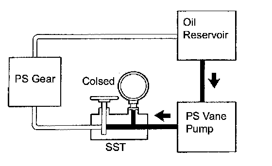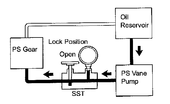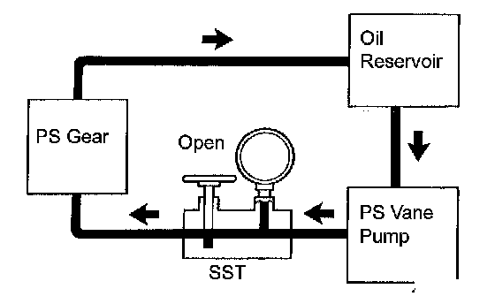 (i) With the engine idling and the valve fully opened, turn the steering wheel to the left or right full lock position.