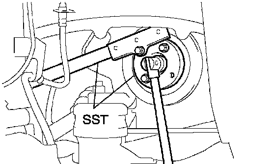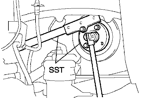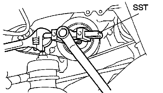 NOTICE: Before using SST, apply lubricating oil on the threads and tip of the center bolt 100.