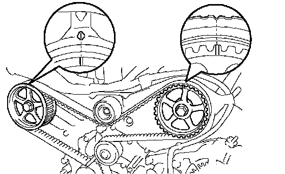 (1) If the installation marks have disappeared, put new installation marks on the timing belt before removal.