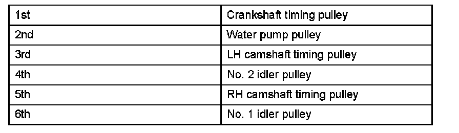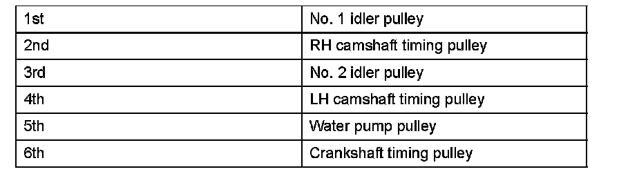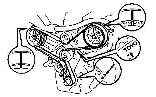 ^ If there is a trace of water and/or oil on the timing belt, repair the leakage and install a new timing belt.