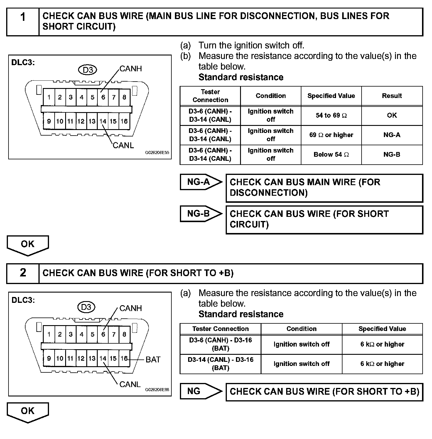 - Turn the ignition switch off before measuring the resistance of the CAN main wires and CAN branch wires.