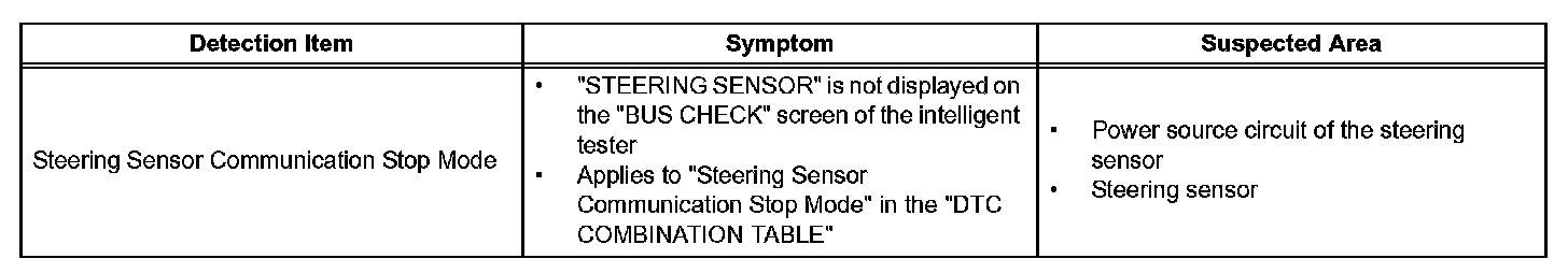 Steering Angle Sensor Communication Stop ModeDetection Item: