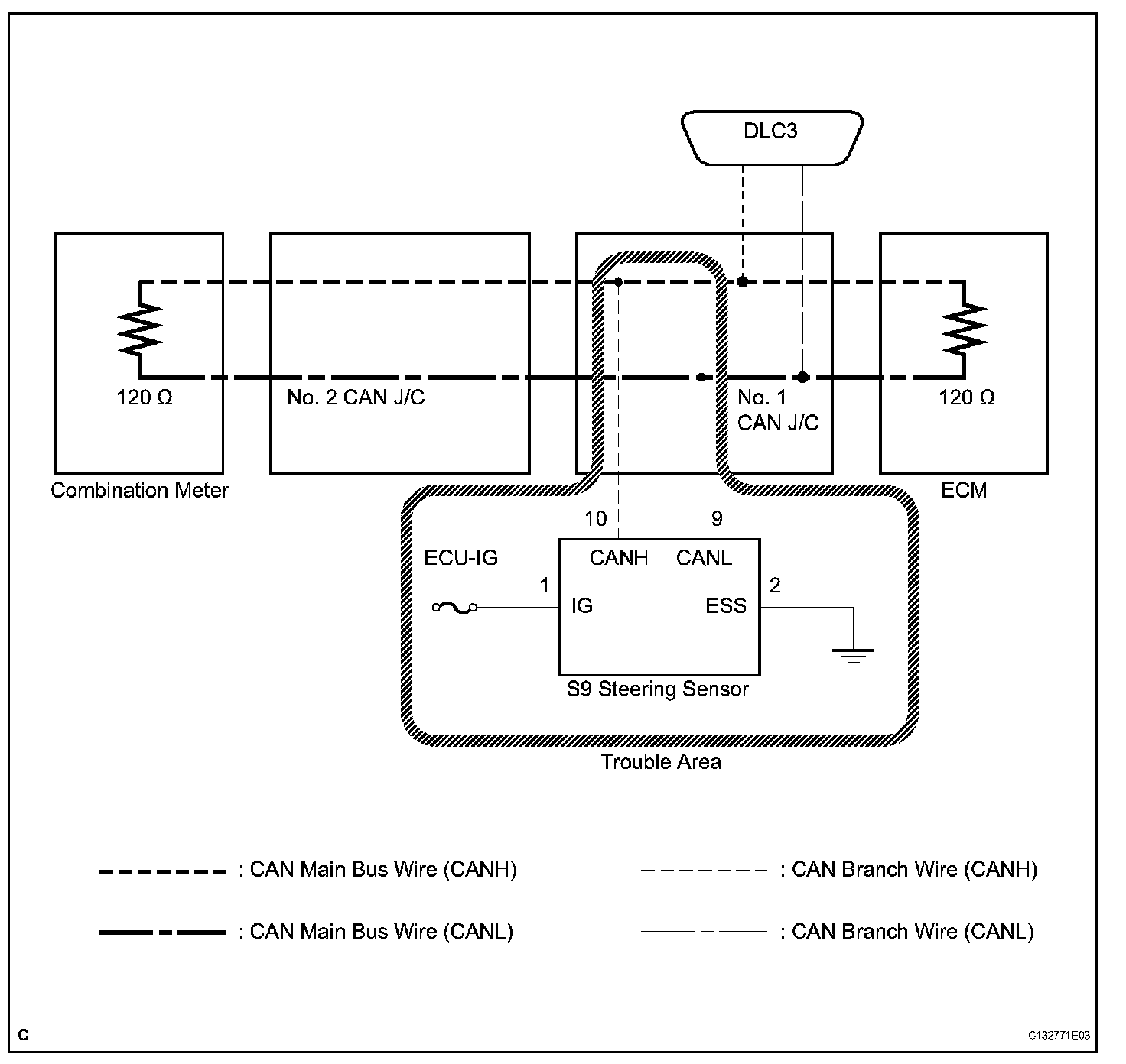 HINT: "STEERING SENSOR" refers to the circuit that includes the steering angle sensor.