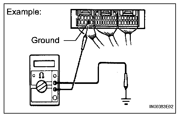 1. Measure the resistance between the ECU ground terminal and body ground.