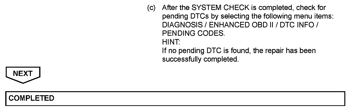 HINT: Do not start the engine until checking MONITOR STATUS. If the engine is started, the steps described must be repeated.