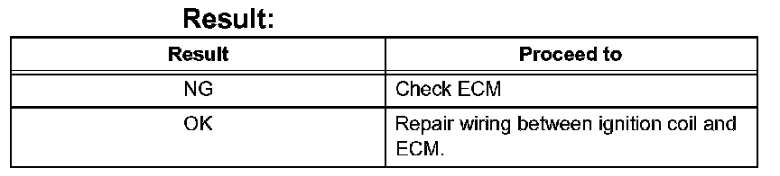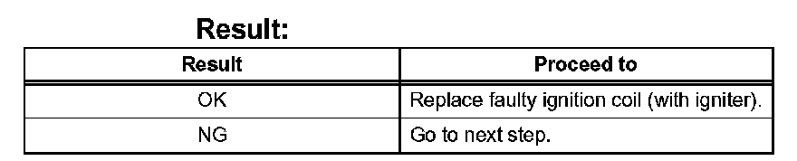 1. Replace current ignition coil (with igniter) with a different functioning ignition coil (with igniter).