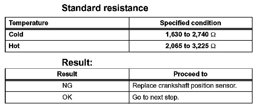 5. Check resistance of crankshaft position sensor.