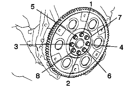 Uniformly install and tighten the 8 bolts in the sequence shown in the illustration.