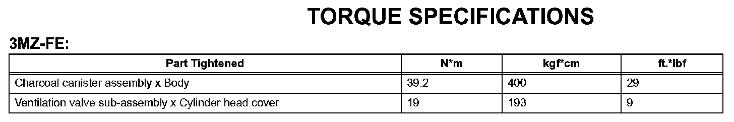 Emission Control - Torque Specifications: