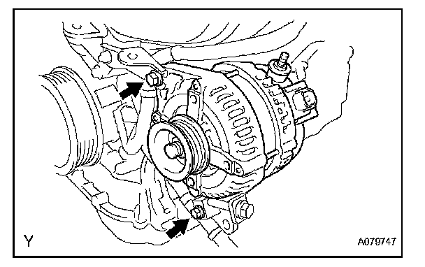 f. Remove the 2 bolts and generator.