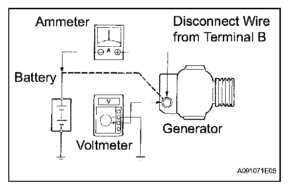 1. Disconnect the wire from terminal B of the generator and connect it to the negative (-) lead of the ammeter.