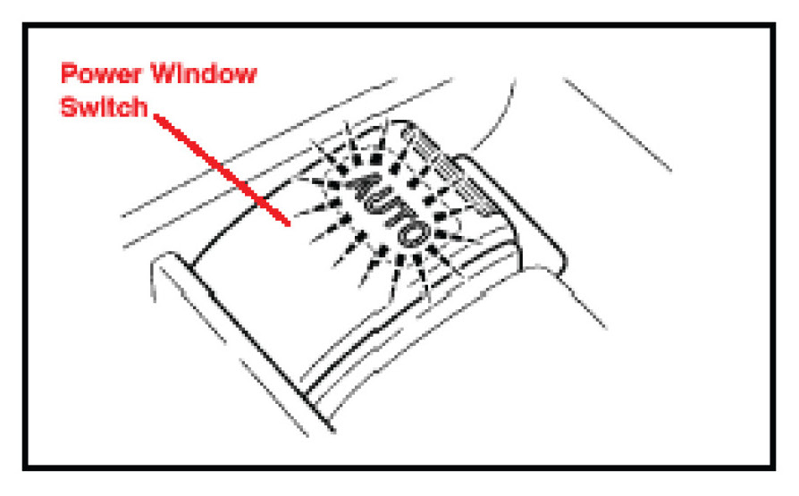 1. Turn the ignition switch to the "ON" position. At this time, the power window switch for the driver's door window should be blinking.