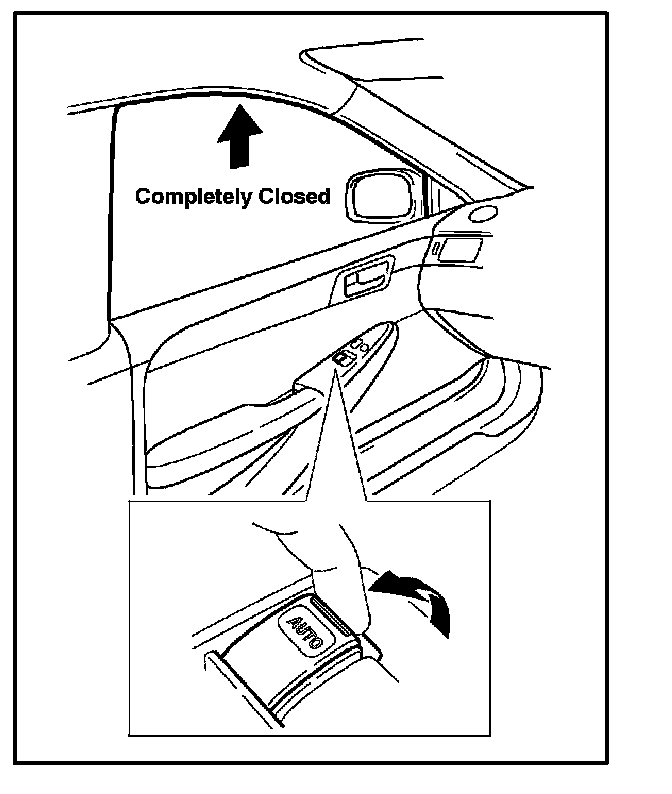 3. Pull and hold up the driver's door power window switch until the window closes. Continue holding the switch for approximately one second until the switch changes from blinking to a constant illumination.