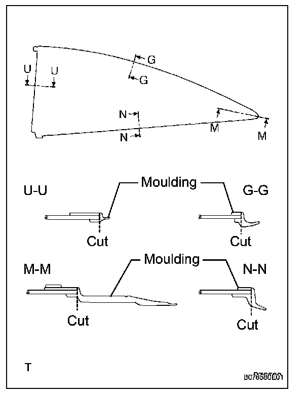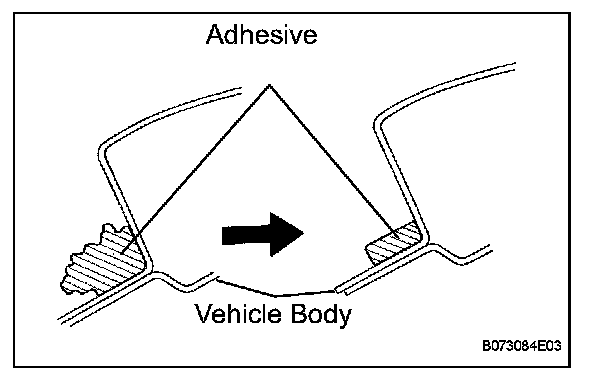 1. On the contact surface of the vehicle body, use a knife to cut away excess adhesive as shown in the illustration.