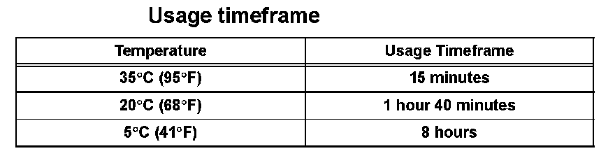 HINT: After cutting off the tip, use all adhesive within the time written in the table below.