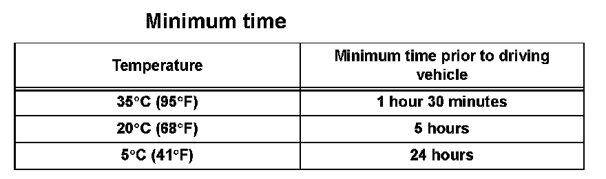 NOTICE: Do not drive the vehicle for the amount of time written in the table below.
