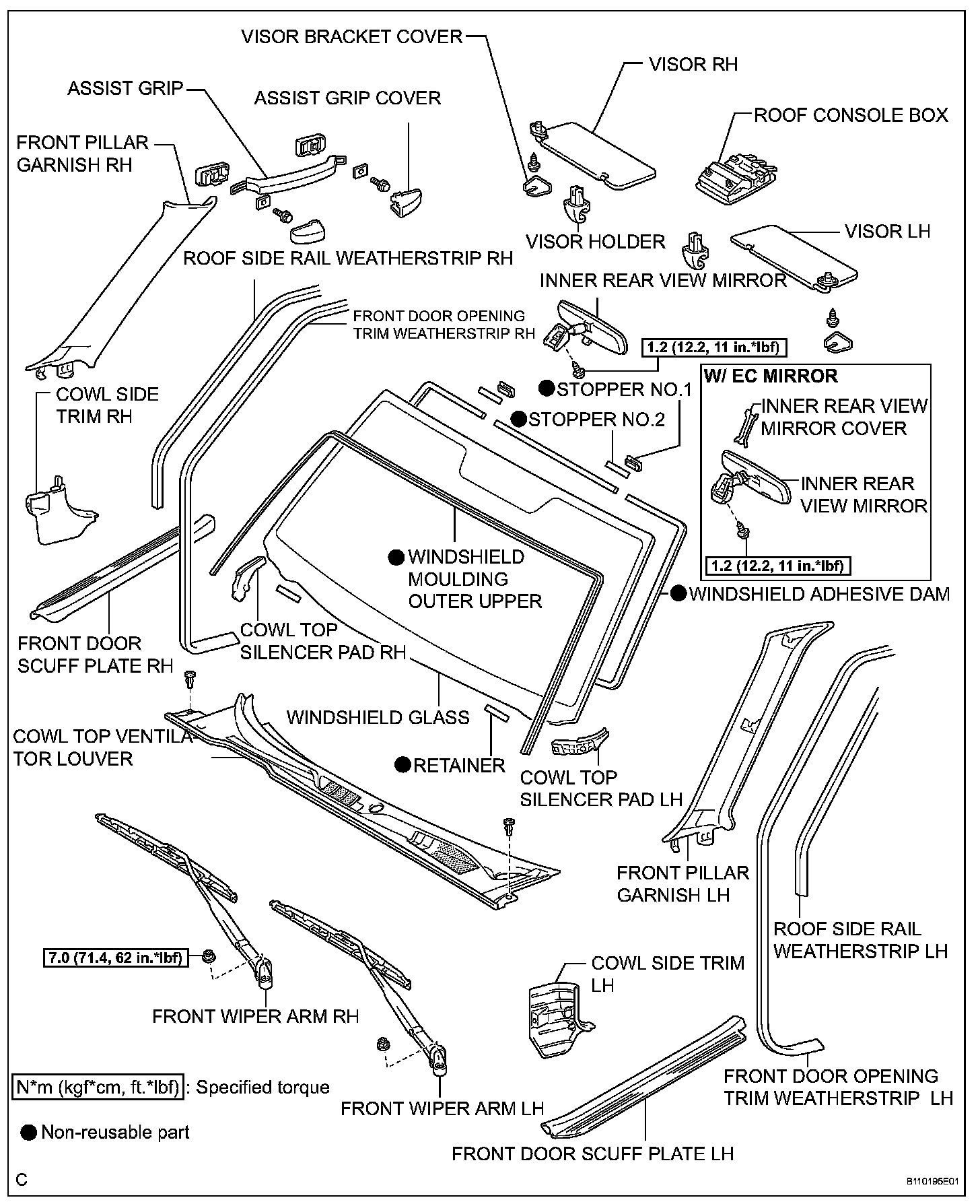 - When reusing the windshield glass, check and correct the matchmarks position.