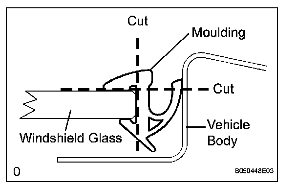 NOTICE: Leave as much adhesive on the vehicle body as possible when removing the windshield glass.