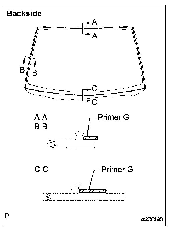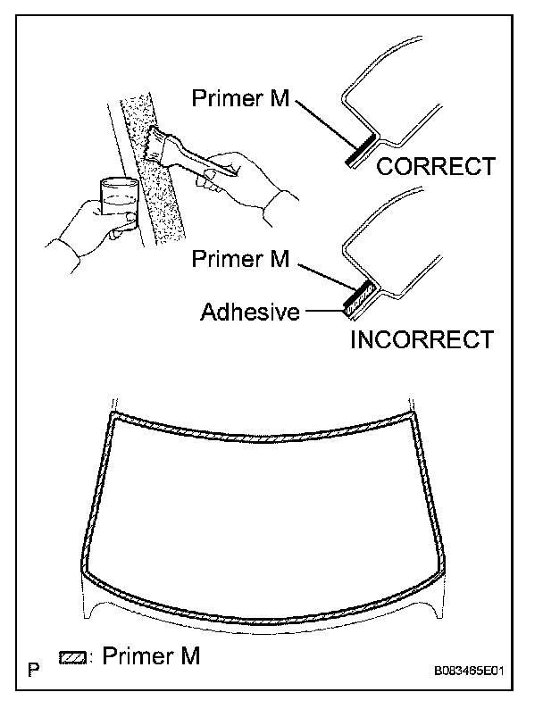c. Using a brush or sponge, apply Primer G to the contact surface of the windshield glass.