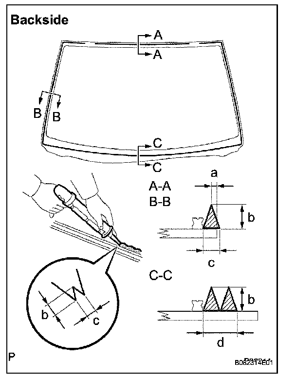 d. Place matchmarks over the windshield glass and vehicle body on the locations indicated in the illustration.