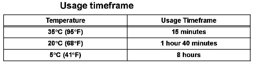 HINT: After cutting off the tip, use all adhesive within the time written in the table below.