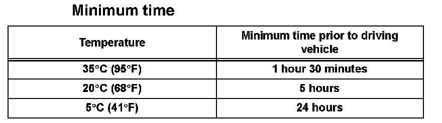 NOTICE: Do not drive the vehicle for the amount of time written in the table below.