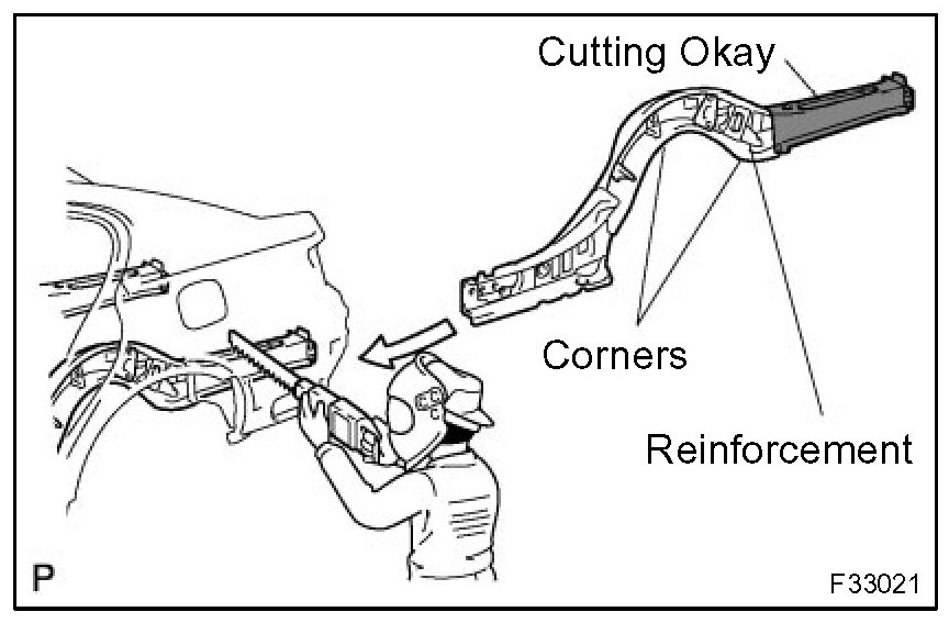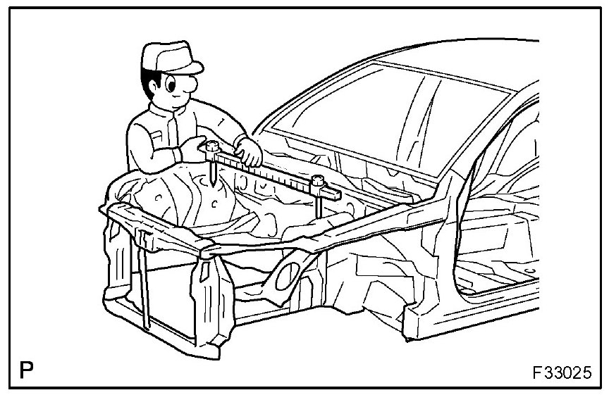 1. Before removal or cutting operations, take measurements in accordance with the dimensions diagram. Always use a puller to straighten a damaged body or frame.