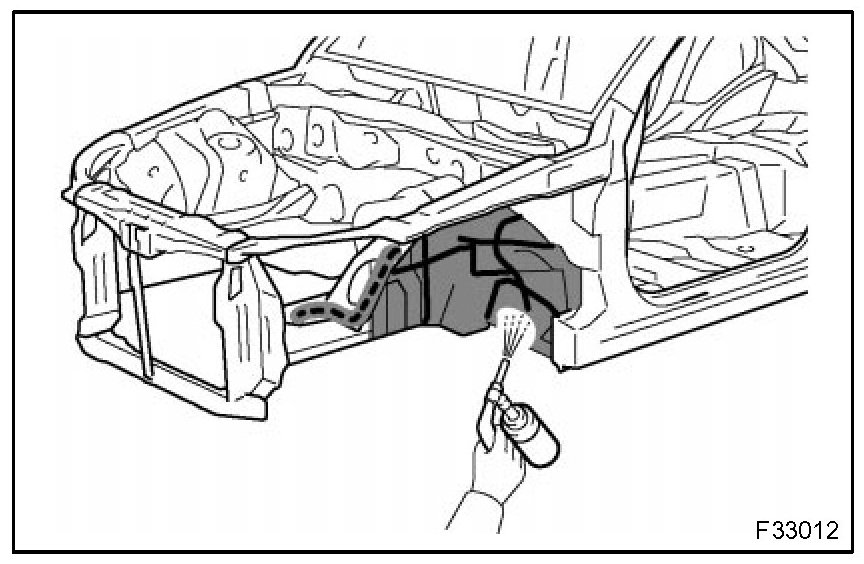1. To prevent corrosion and protect the body from damage by flying stones, etc., apply anti-chipping paint to the rocker panel, wheel arch areas, balance panel, etc.