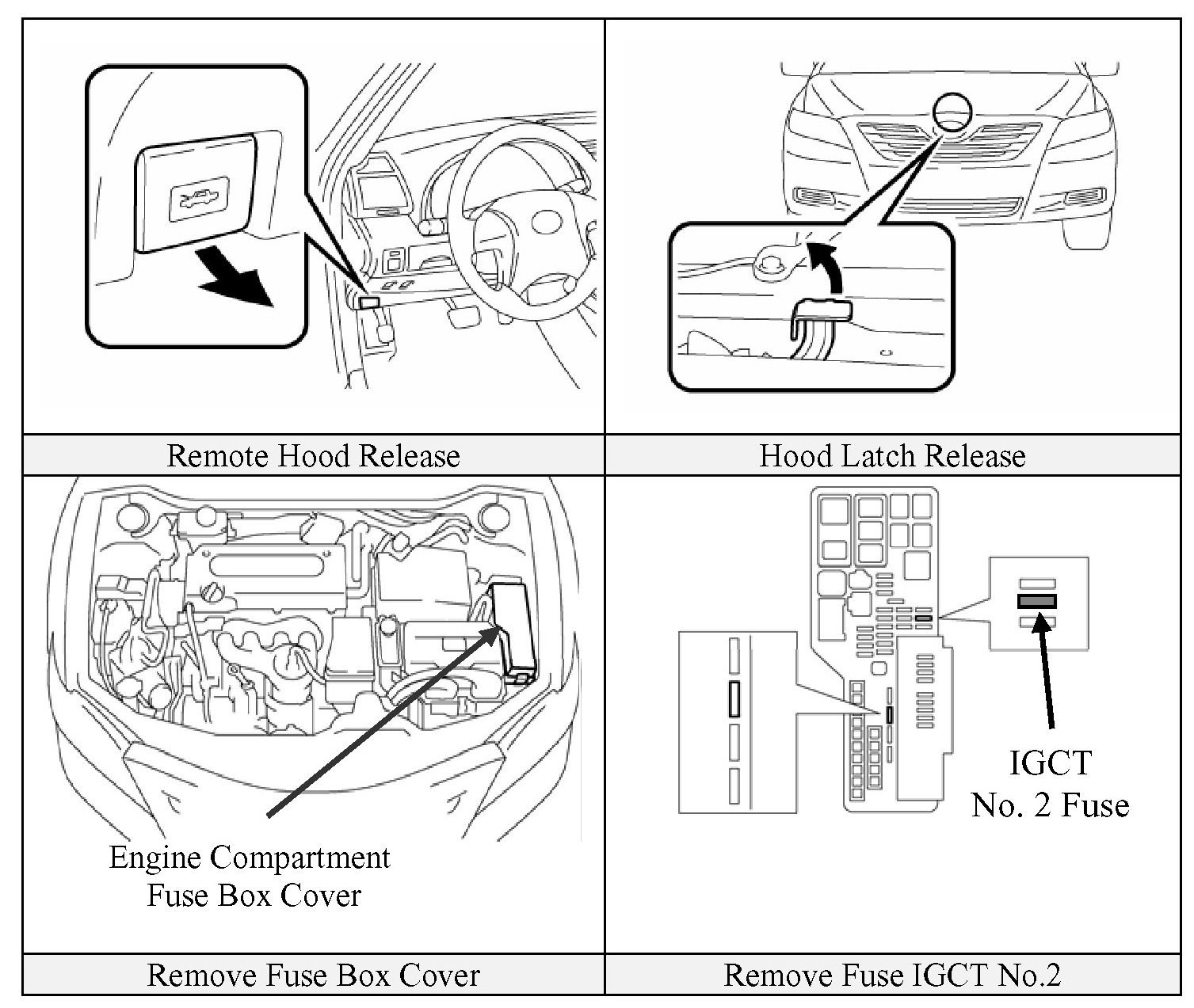 2. Remove the driver side fuse box cover in the engine compartment.