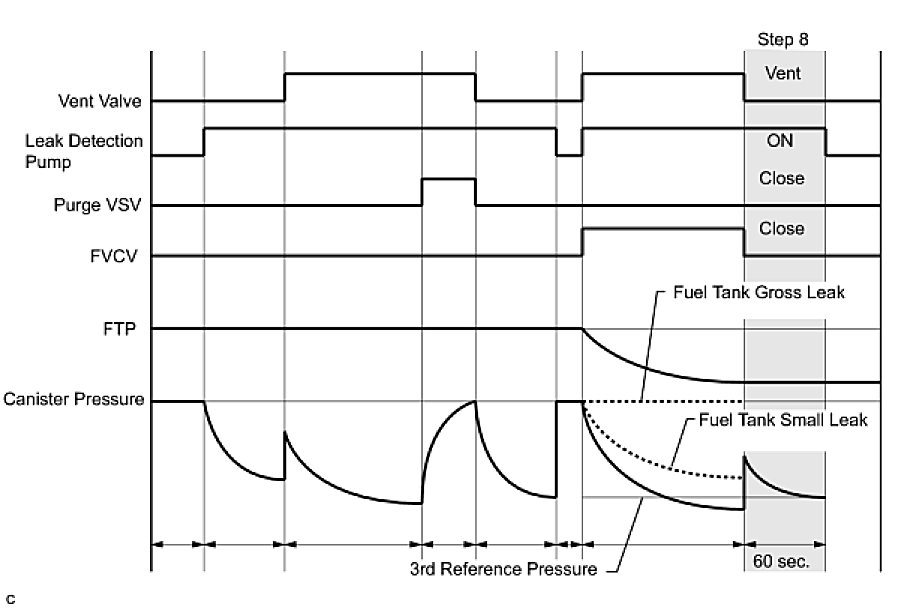 - (d) Check the EVAP pressure again when it has stabilized. This pressure is the canister leak pressure standard.