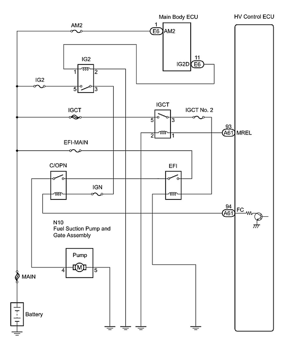 2AZ-FXE ENGINE CONTROL SYSTEM: SFI SYSTEM: Fuel Pump Control Circuit