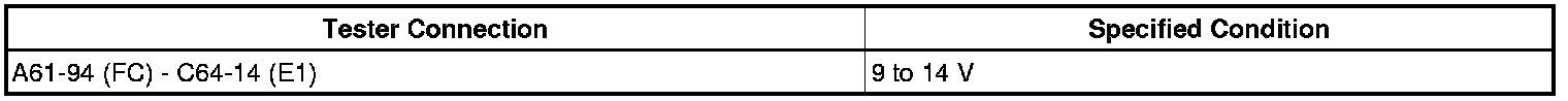 (b) Measure the voltage between the terminals of the A61 and C64 hybrid vehicle control ECU connectors.