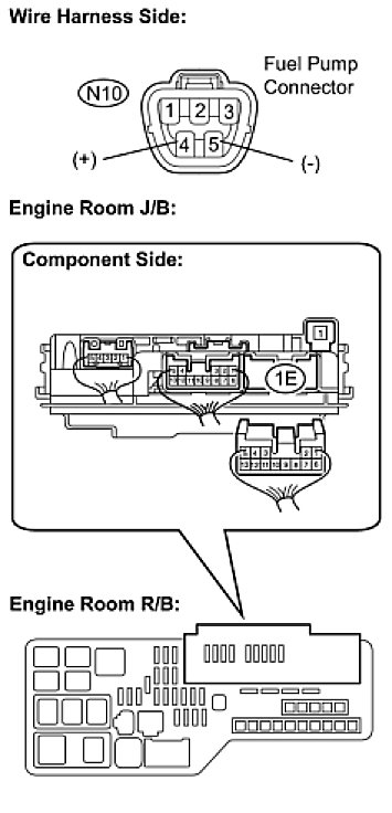 (a) Check the harness and the connectors between the engine room J/B and the fuel pump.