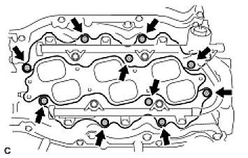 Install and tighten the 6 bolts and 4 nuts uniformly in several steps.