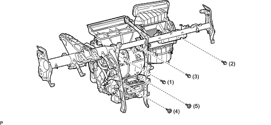(a) Install the conditioner unit assembly to the instrument panel reinforcement assembly with the 2 screws and 3 bolts.