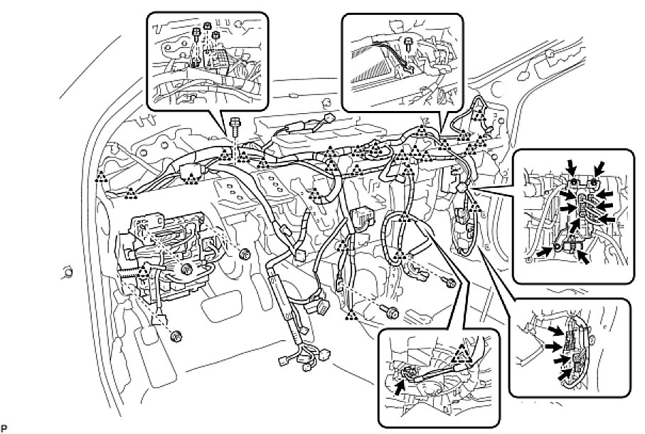 (1) Using a "TORX" socket wrench (T40), install the instrument panel reinforcement assembly with the 3 "TORX" bolts.