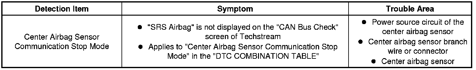 CAN COMMUNICATION SYSTEM: Center Airbag Sensor Communication Stop Mode