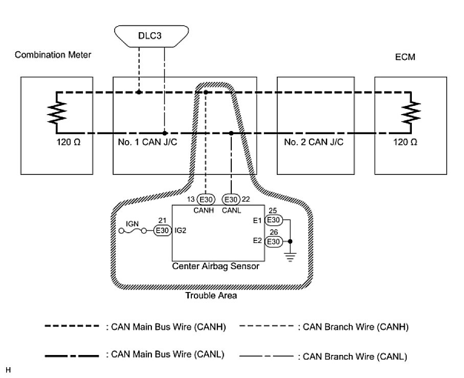 1. CHECK OPEN IN CAN BUS WIRE (CENTER AIRBAG SENSOR BRANCH WIRE)