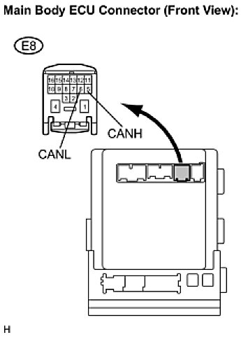 (1) Disconnect the E8 main body ECU connector.