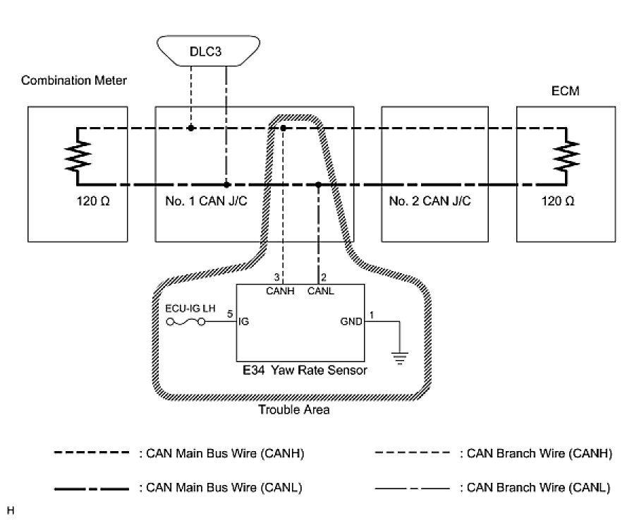 1. CHECK OPEN IN CAN BUS WIRE (YAW RATE SENSOR BRANCH WIRE)