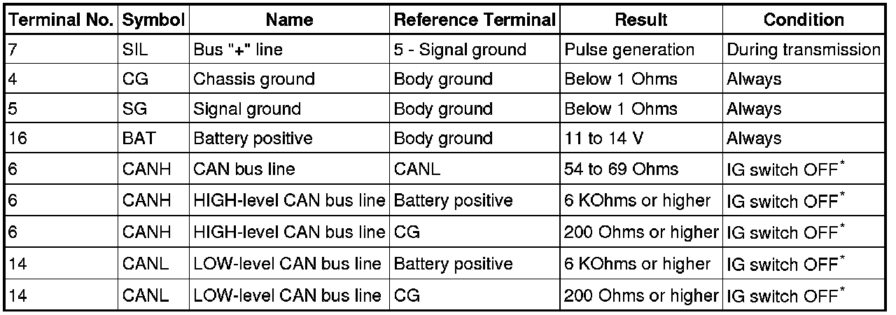 NOTE: *: Before measuring the resistance, leave the vehicle as is for at least 1 minute and do not operate the ignition switch, any other switches or the doors.