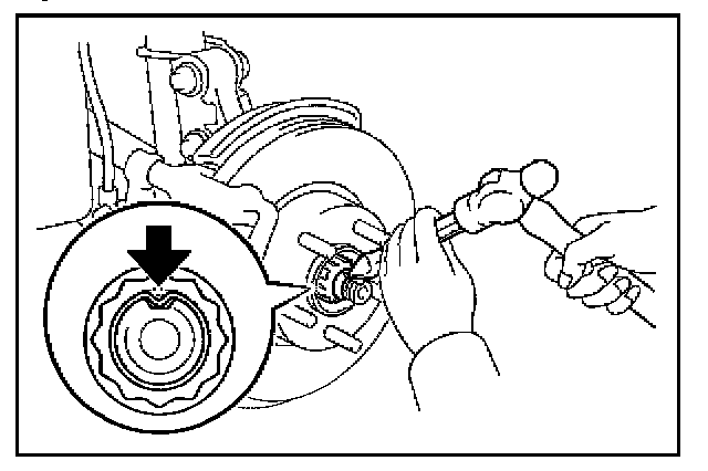 C. Using a chisel and hammer, stake the front axle hub nut.